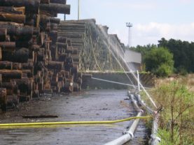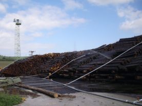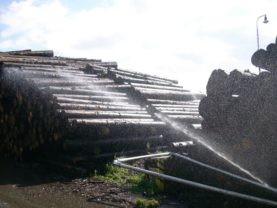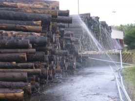Způsobů provedení mokré ochrany dřevní kulatiny je více, v našich podmínkách připadá nejčastěji v úvahu mokrá ochrana kulatiny postřikem. Námi dodávané postřikovací zařízení umožňuje skladovat dřevní kulatinu po dlouhou dobu bez znehodnocení vznikem výsušných trhlin a rozvojem hub. Tento systém ochrany kulatiny je možné provádět stabilním nebo mobilním zařízením. Pro provoz obou zařízení jsou použitelné systémy potrubí a postřikovačů PERROT.